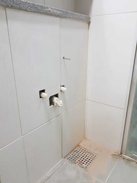 안쪽 수도 파이프는 설비팀이 와서 재 시공하고 저희팀은 젠다이와 세면대를 재시공했습니다.