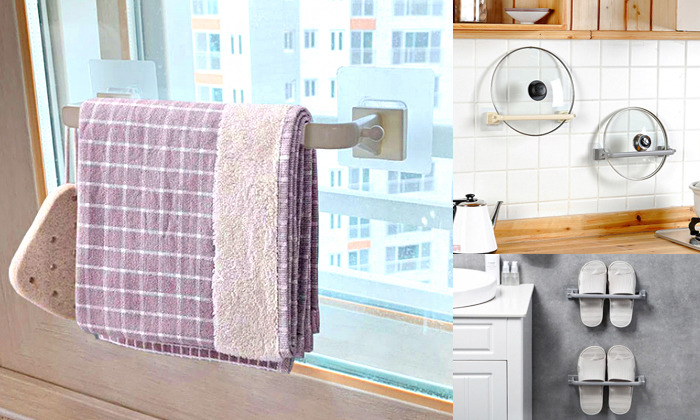 1분이면 튼튼한 홀더가 하나 완성된다. 못 박을 필요 없이 초강력 접착으로 어느 벽이든, 심지어 유리창에도 부착 가능한 이지홀더다. 특히 욕실에 수건걸이가 마땅치 않은 집에 추천. 부엌에 설치하면 냄비뚜껑이나 조리기구 걸이로도 사용 가능하다. 현관에 두고 슬리퍼 걸이로도 쓰는 경우도 많다. 1+1에 소재도 튼튼해 가성비도 좋다.