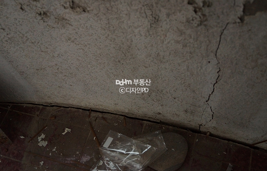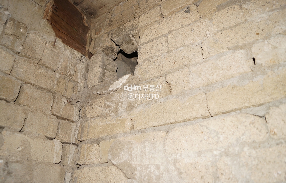 벽체에 금이 많이 간 상태에 환기구 또한 제대로 작동되는 형태가 아니었기 때문에 매우 습했습니다.