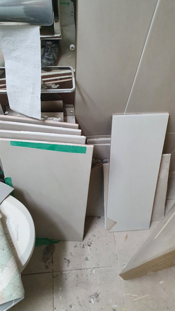 들뜨고 박리가된 벽타일들을 철거한후 새타일로 재시공 했습니다.
