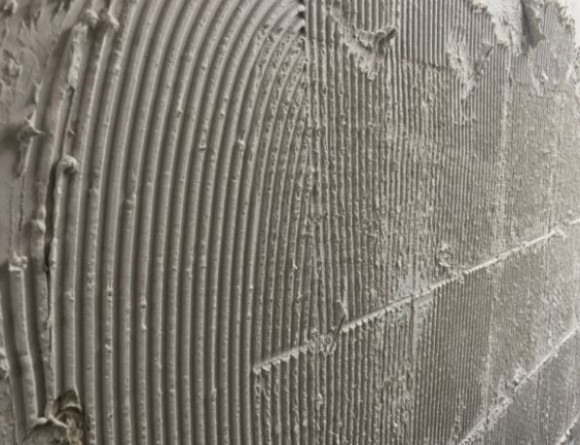 작업 속도를 높이기 위해 바탕면에 몰타르를 한번에 넓고 얇게 바른건 아닌지,