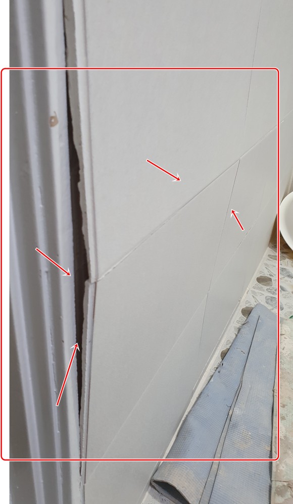 여러가지 원인으로 인한 하자는 많겠지만 오늘 포스팅하는 현장은 공법이 잘못되어 배부름 현상이 발생된 곳입니다.