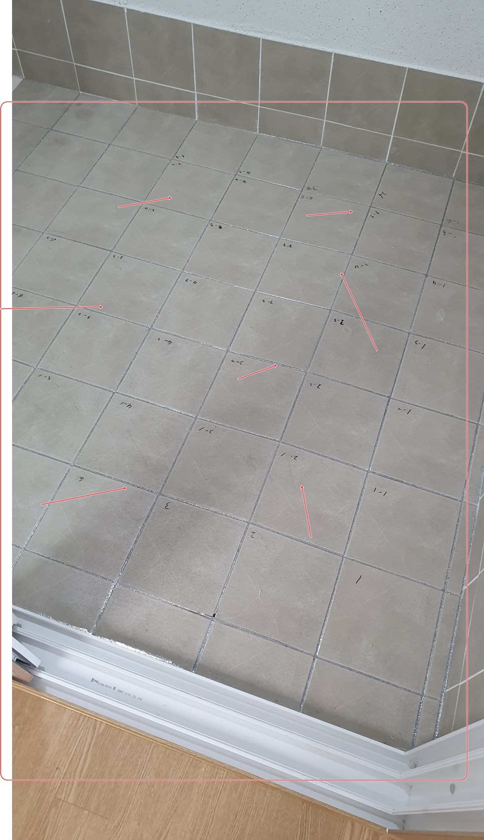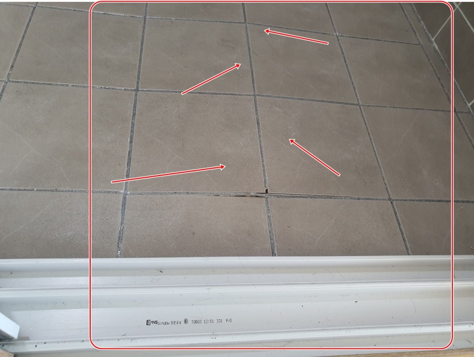 겨울철(12월 초)에 위치한 발코니 창을 닫아 두었다면, 한 낮 따뜻한 햇빛으로 인해 발코니 내부 온도가 상승할 것이고 바닥에 붙여진 타일은 온도 상승에 따라 각각의 길이 방향으로 팽창을 할 것입니다.