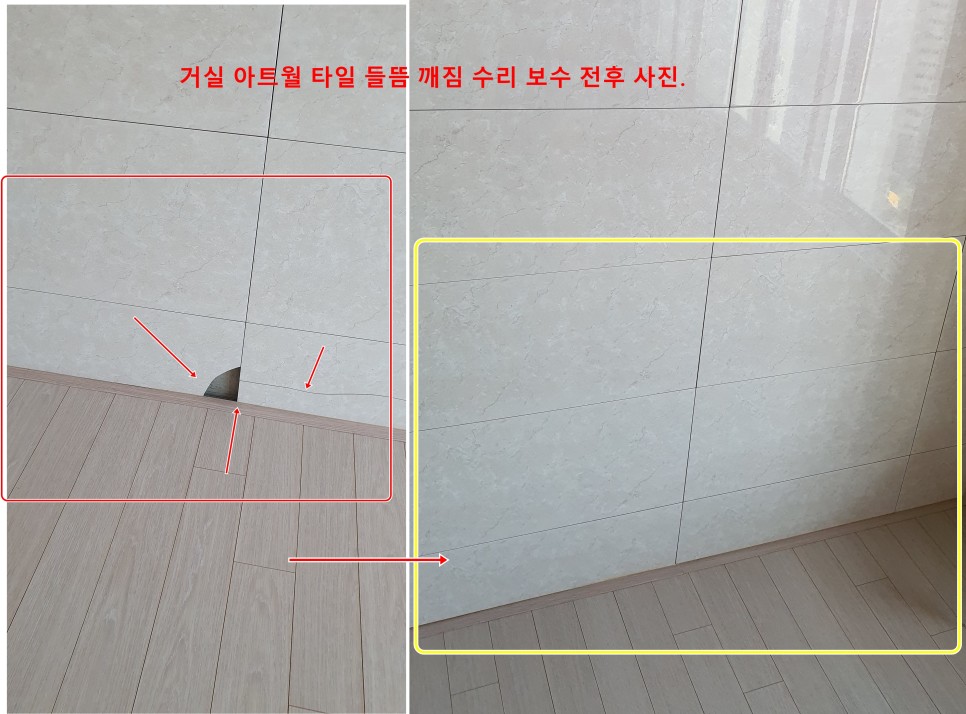 아파트 타일 하자수리/욕실타일금/타일크랙/베란다 타일 뜸/깨진타일 하자보수/베란다타일솟음/벽깨진곳수리/벽타일금/벽걸이 티비 보수/