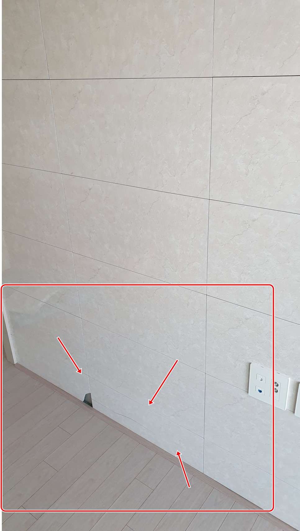 [부산 김해 정관 타일 수리 보수공사] 양산시 새실로 53 물금 이지더원1차 101동 거실 아트월 타일 들뜸 금 깨짐 들뜸 떨어짐 박리 수리 하자보수 부분교체 현장