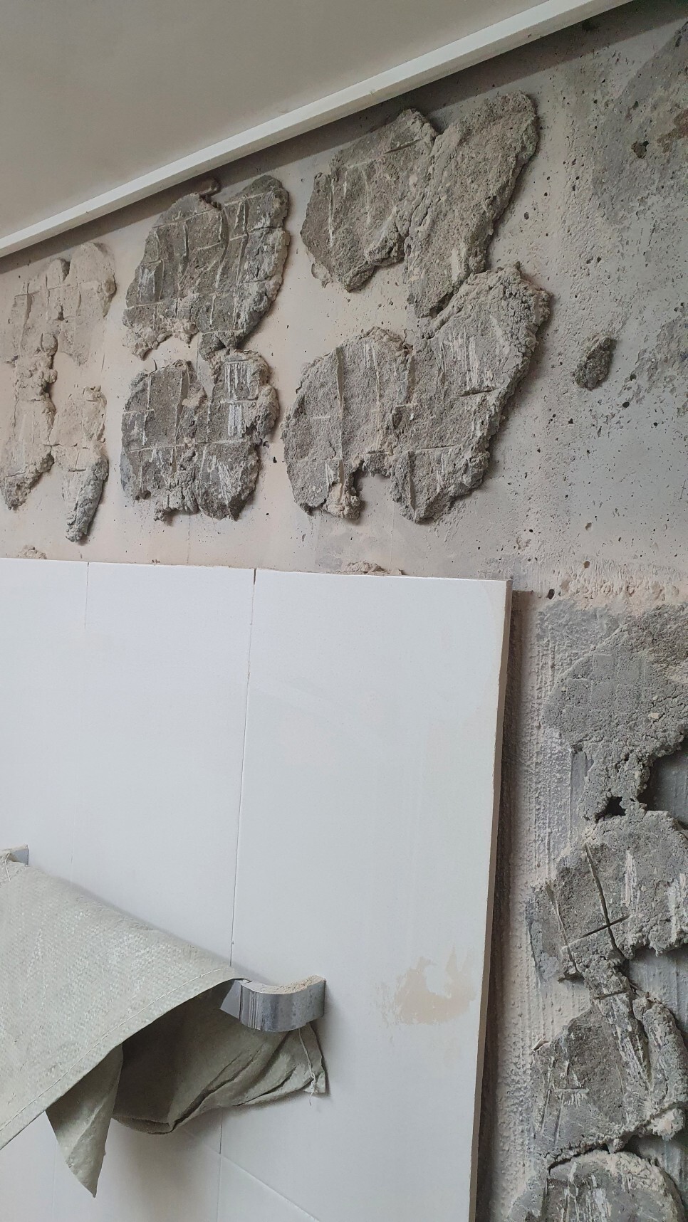 작업 속도를 높이기 위해 바탕면에 몰타르를 한번에 넓고 얇게 바른건 아닌지,