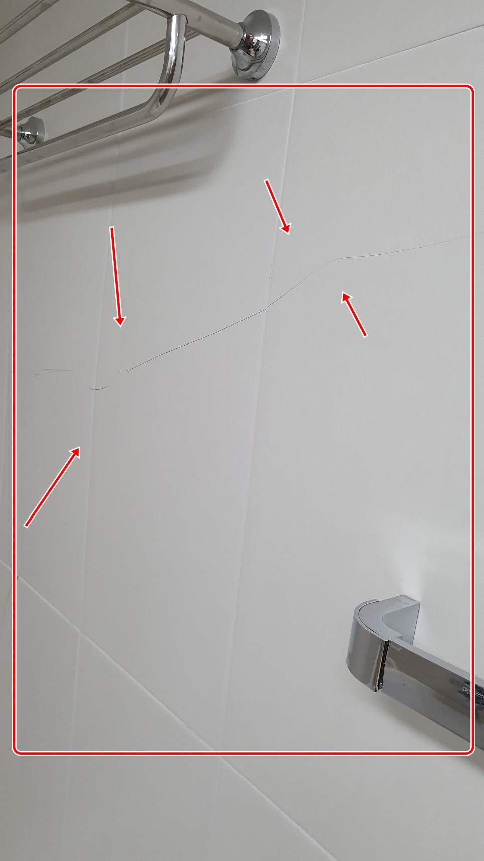 시공이 까다로운 욕실, 예쁘게 꾸며두었는데 금방 욕실 타일에 생긴 작은 금을 발견하고