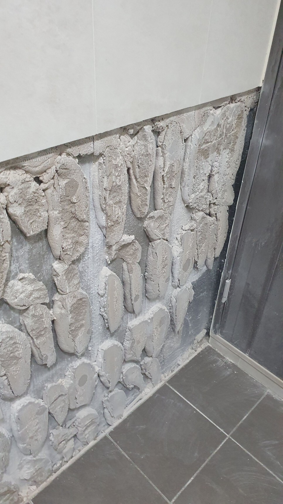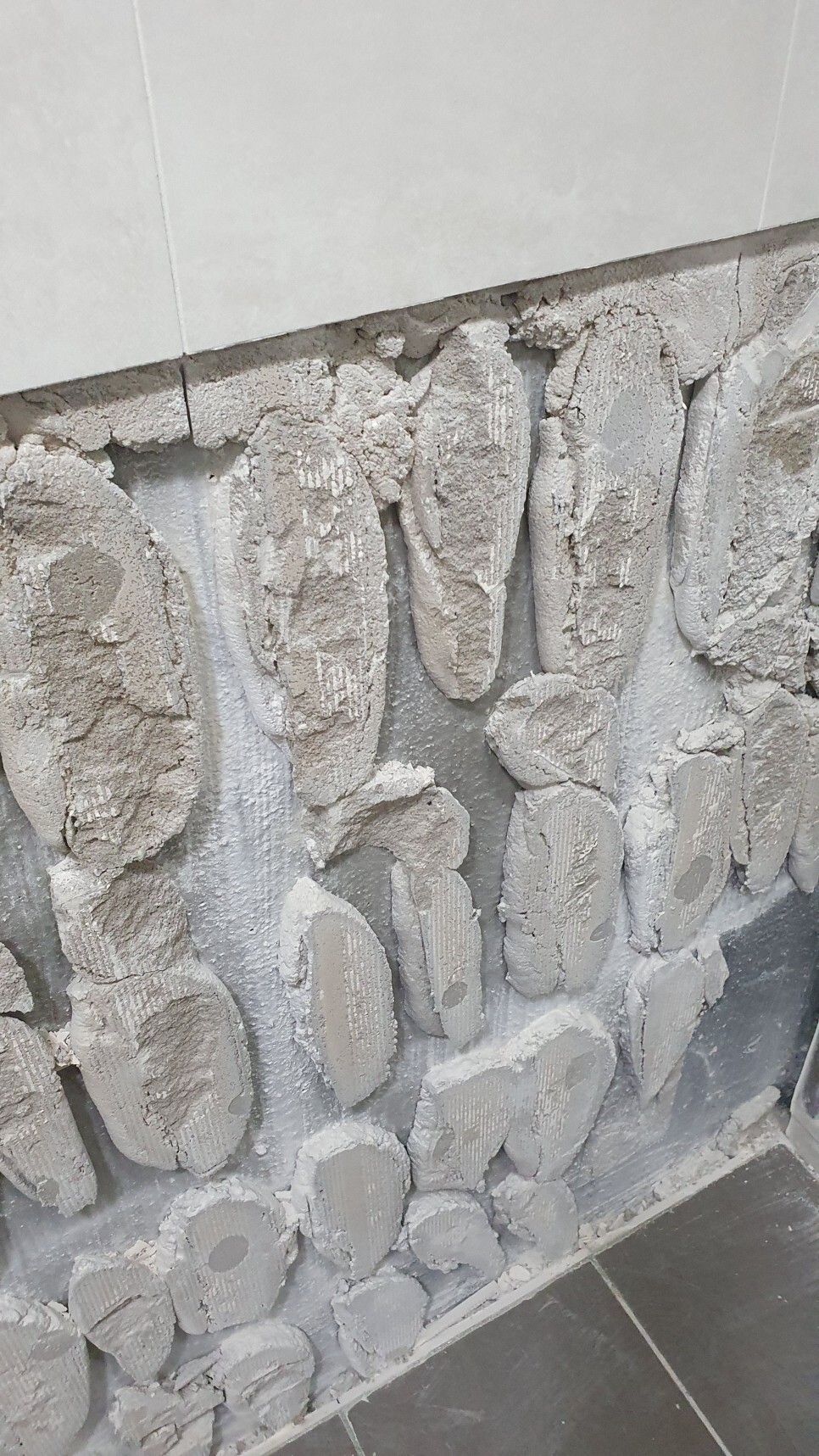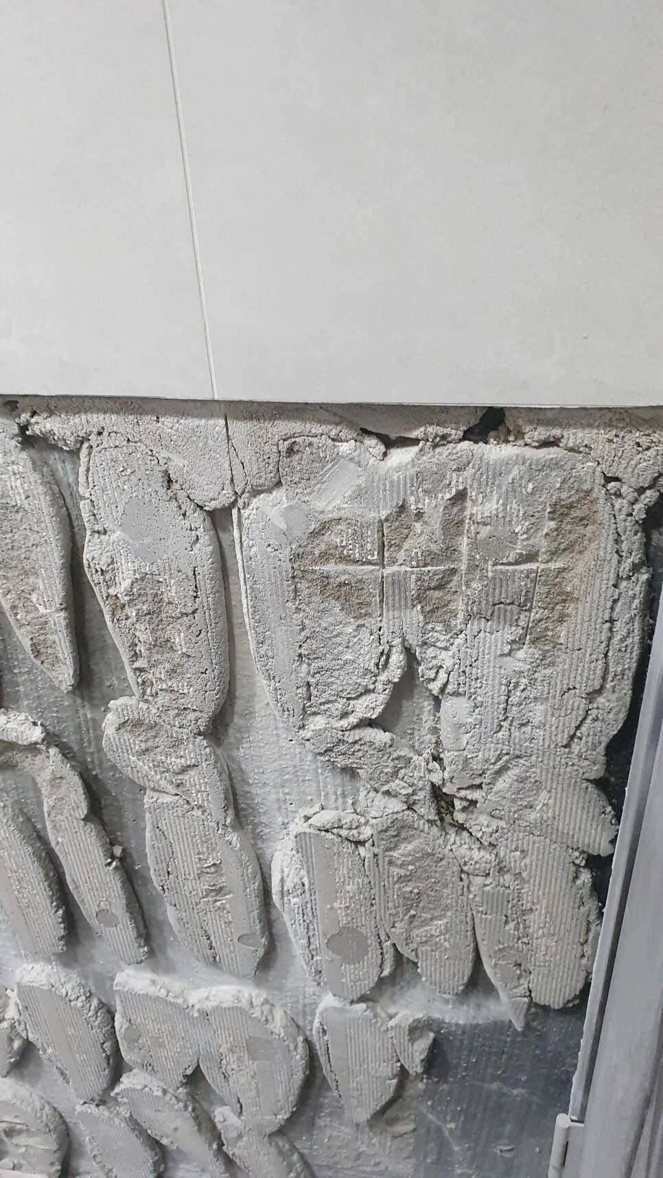 위 사진에서 보듯이 시멘트 밥이 벽에 그대로 붙어있는 모습이 보이시지요?