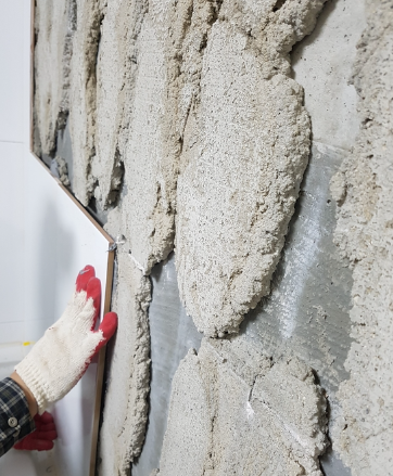 위 사진에서 보듯이 시멘트 밥이 벽에 그대로 붙어있는 모습이 보이시지요?