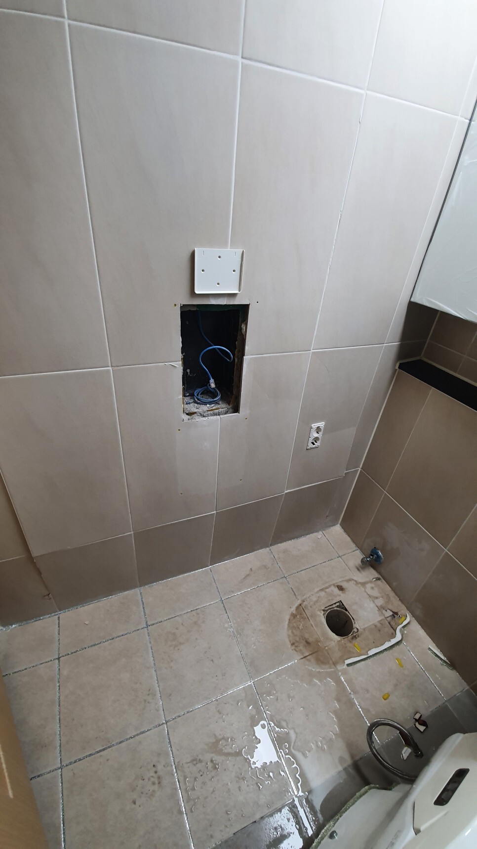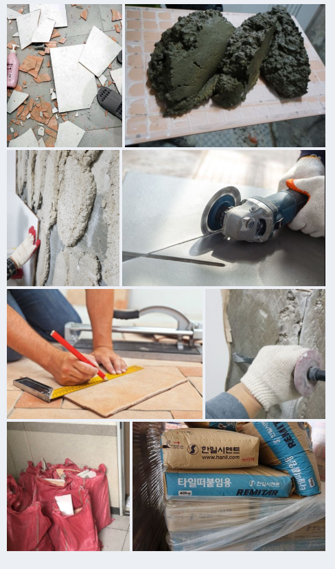 아파트 시공후4년이 지난 아파트라 최근에 나오는 타일들과 사이즈가 틀리고 색상이 틀려서 전체를 다 철거후 다시시공해야 했습니다.