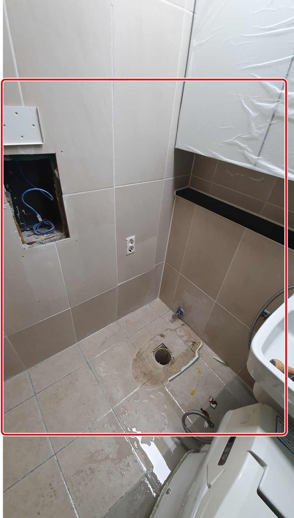 타일을 부분철거한 후 재시공한 사례입니다.