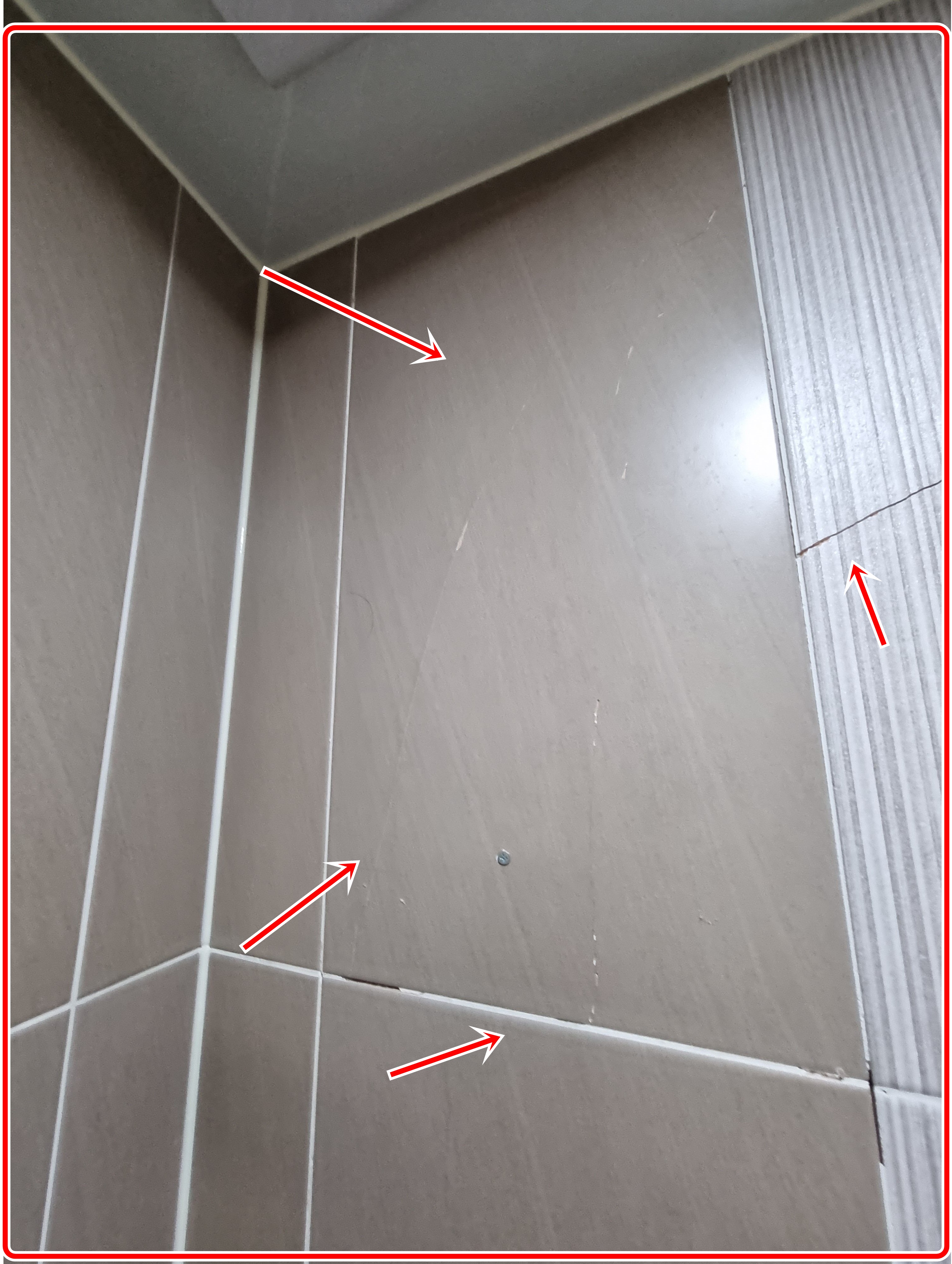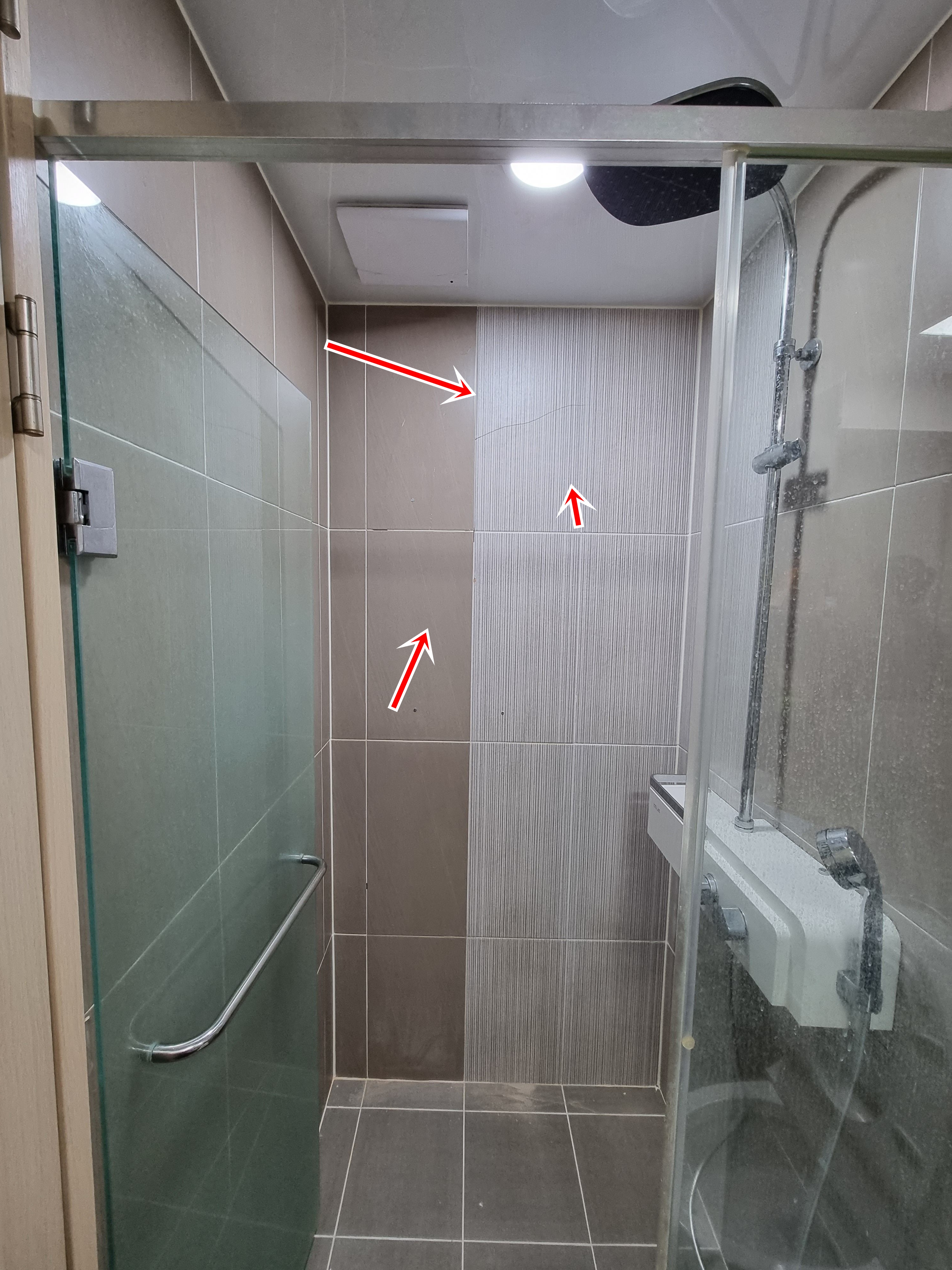 이곳 벽 타일 특성상 습기가 차고 겨울에 수축 팽창에 약해 벽에 붙어있는 타일들이 터지거나 박리가 되는 현상이 일어나곤 합니다.
