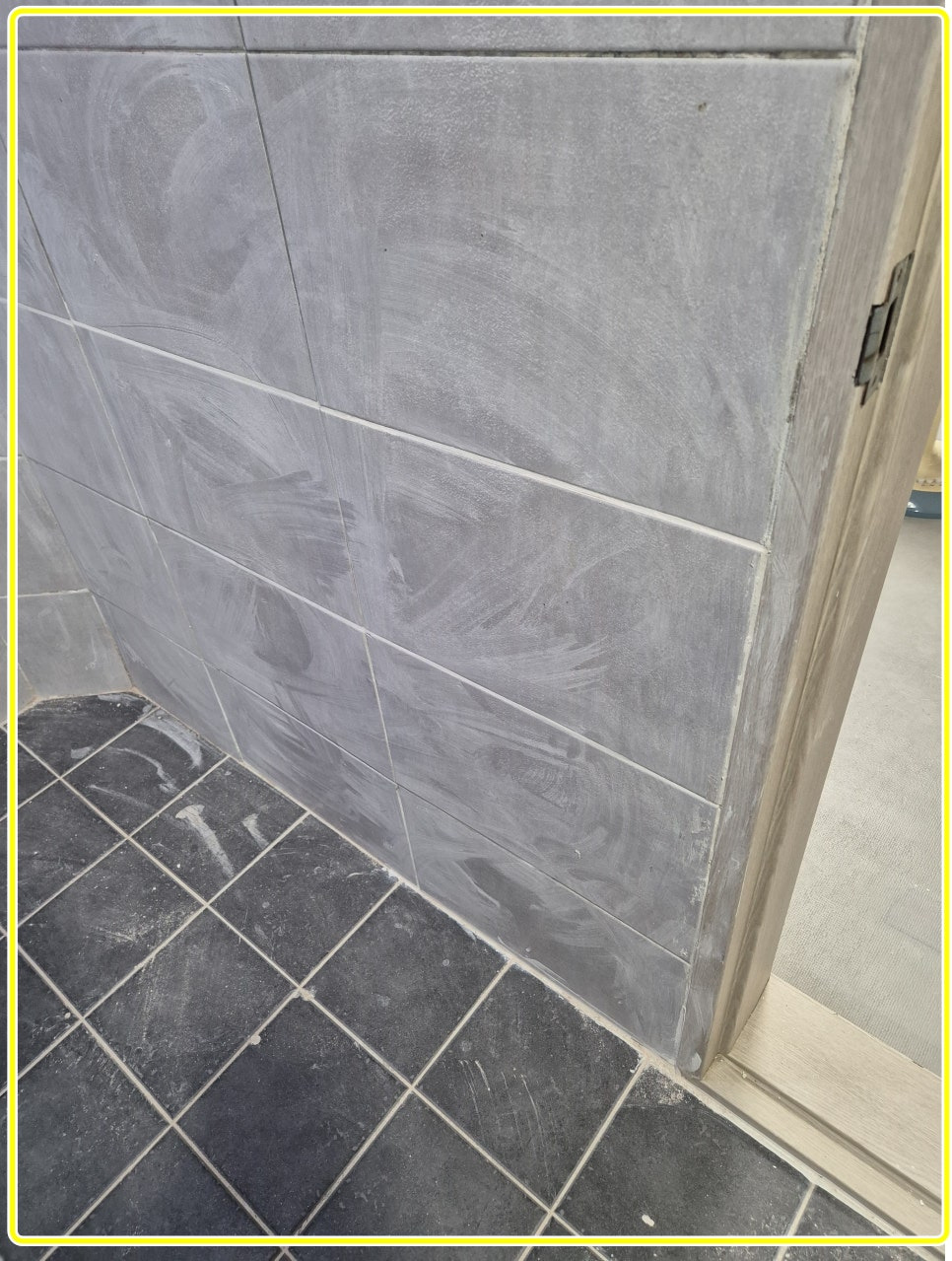 예: 샤워문 주변 타일이 전체적으로 들뜬 경우, 구조적 문제를 해결한 뒤 새로 설치합니다.