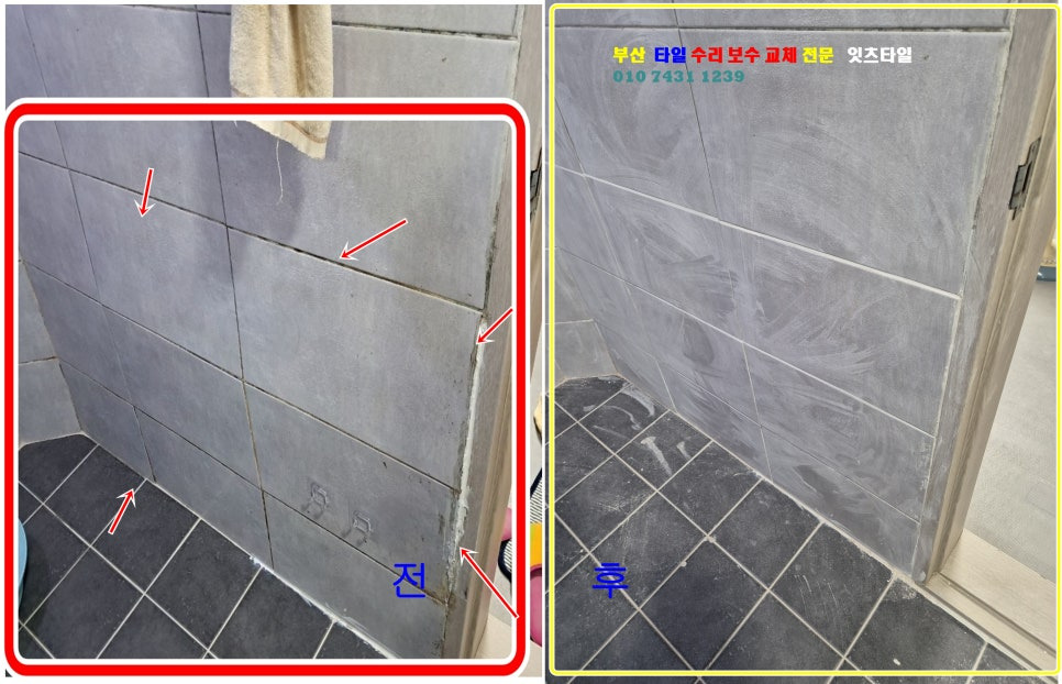 부산 타일 하자보수공사 타일수리공사 정관 명지 김해 양산 장유 물금 벽타일 바닥타일 들뜬 깨진 떨어진 구멍 팽창 깨짐 터짐 배부름 박리 크랙 갈라짐 부분 교체 공사