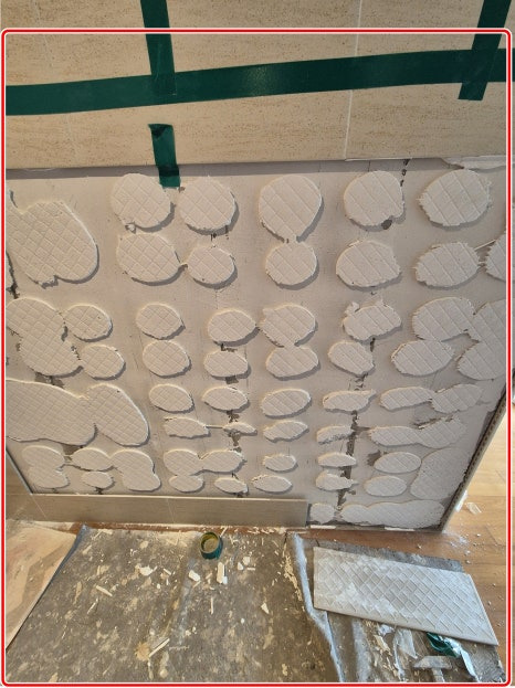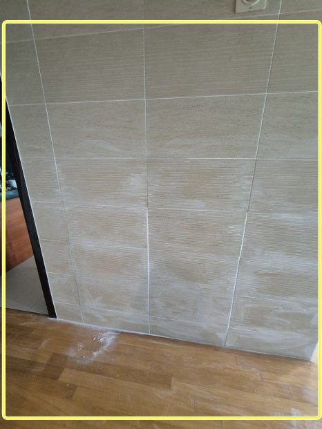 처음에는 약간 들뜬 느낌이 들었는데 점점 흔들리는 부위가 넓어져 결국에 들썩거리는 들뜸 타일 현상이 일어났습니다.